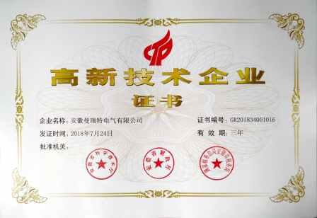 2018年12月15日,我公司于安徽省合肥市肥西縣科技局處領(lǐng)取高新技術(shù)企業(yè)認(rèn)定證書。